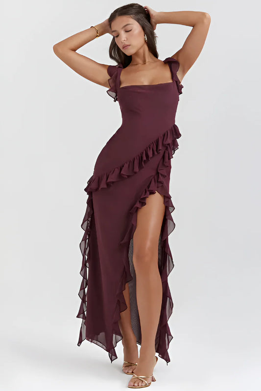Serena – Strapless Ribbon Maxi Dress with Side Slit