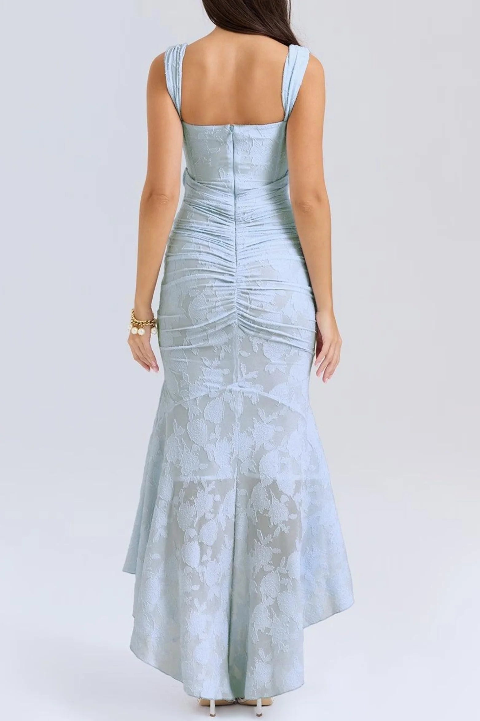 The Blue Bell Floral Maxi Dress blends vintage romance with timeless sophistication. Its soft powder blue hue, corset-inspired structure, and flowing hem create a silhouette that feels sculpted yet weightless. Perfect for weddings, garden parties, and celebrations where elegance takes center stage.