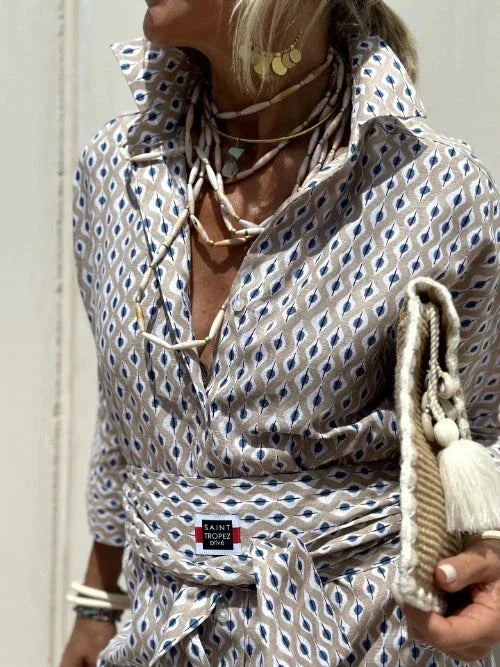 The Lureza dress combines effortless comfort with chic sophistication. Designed with a fluid shirt style, it’s the perfect choice for warm days and relaxed summer activities, offering both freedom and elegance with every step.