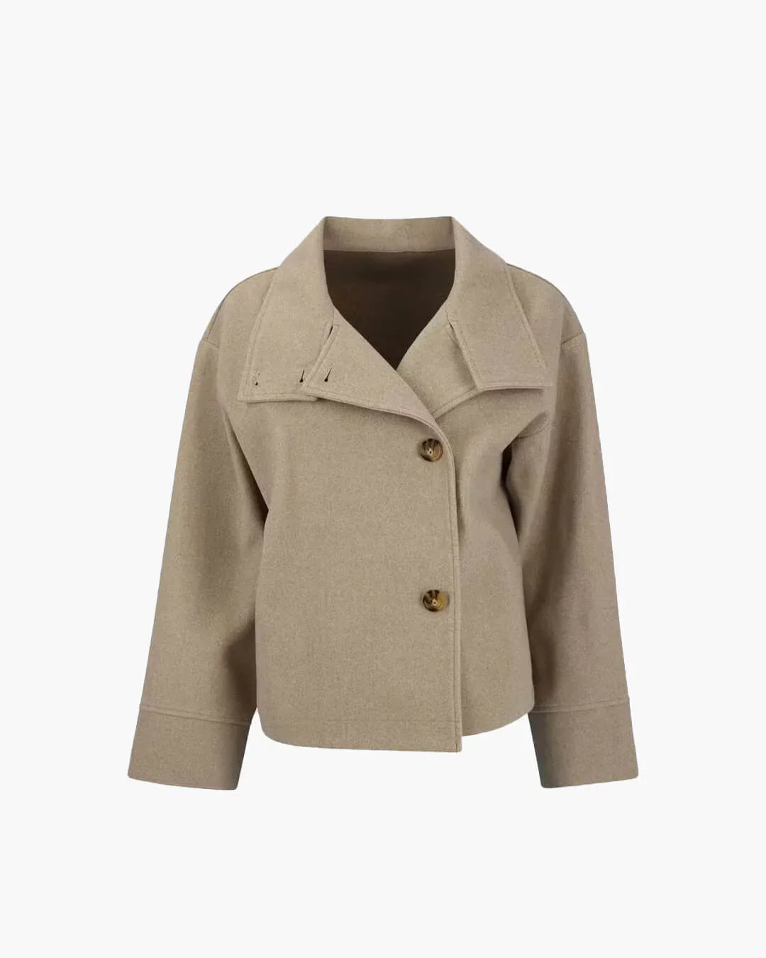 Crafted from premium-quality polyester, this jacket features a high collar and a single-button closure that exude understated elegance. The sleek silhouette flatters your figure while providing warmth and comfort during cool autumn days and crisp evenings.